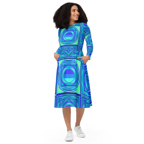 All-over print long sleeve midi dress Laila Lago & C. by Iannilli Antonella