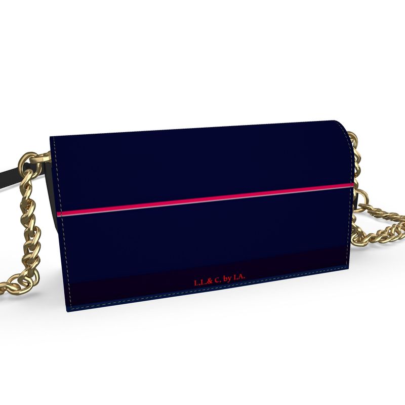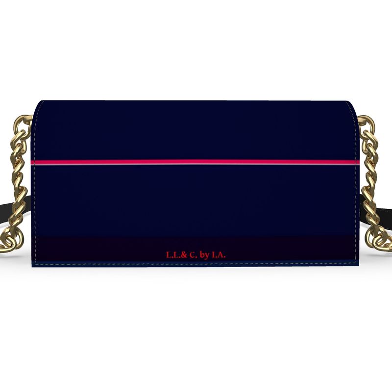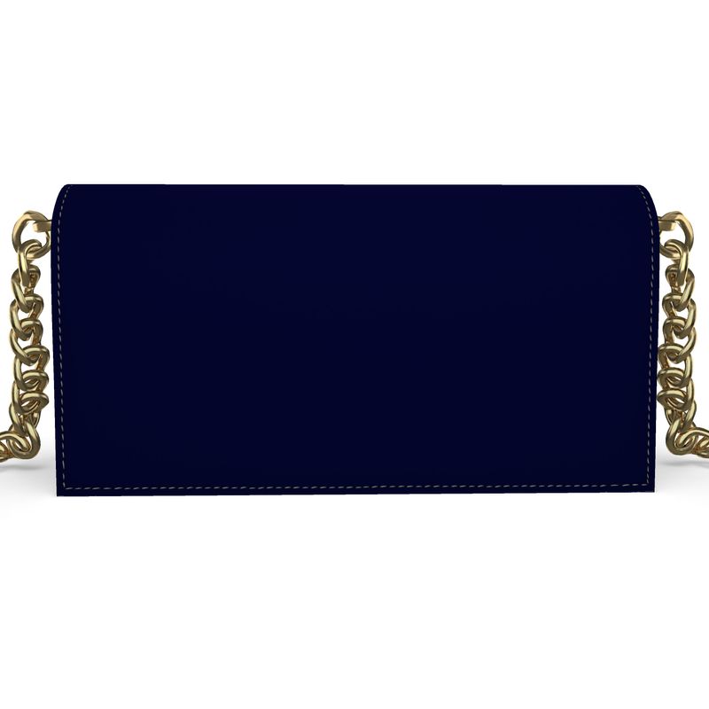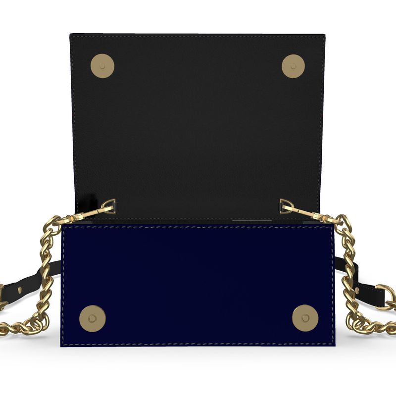 Un elegante borsa in pelle dalla collezione La strada delle fiabe, elgante e raffinata, con stampa blu e grafismi , da abbinare ai prodotti della raccolta, realizzata con meravigliosi materiali.