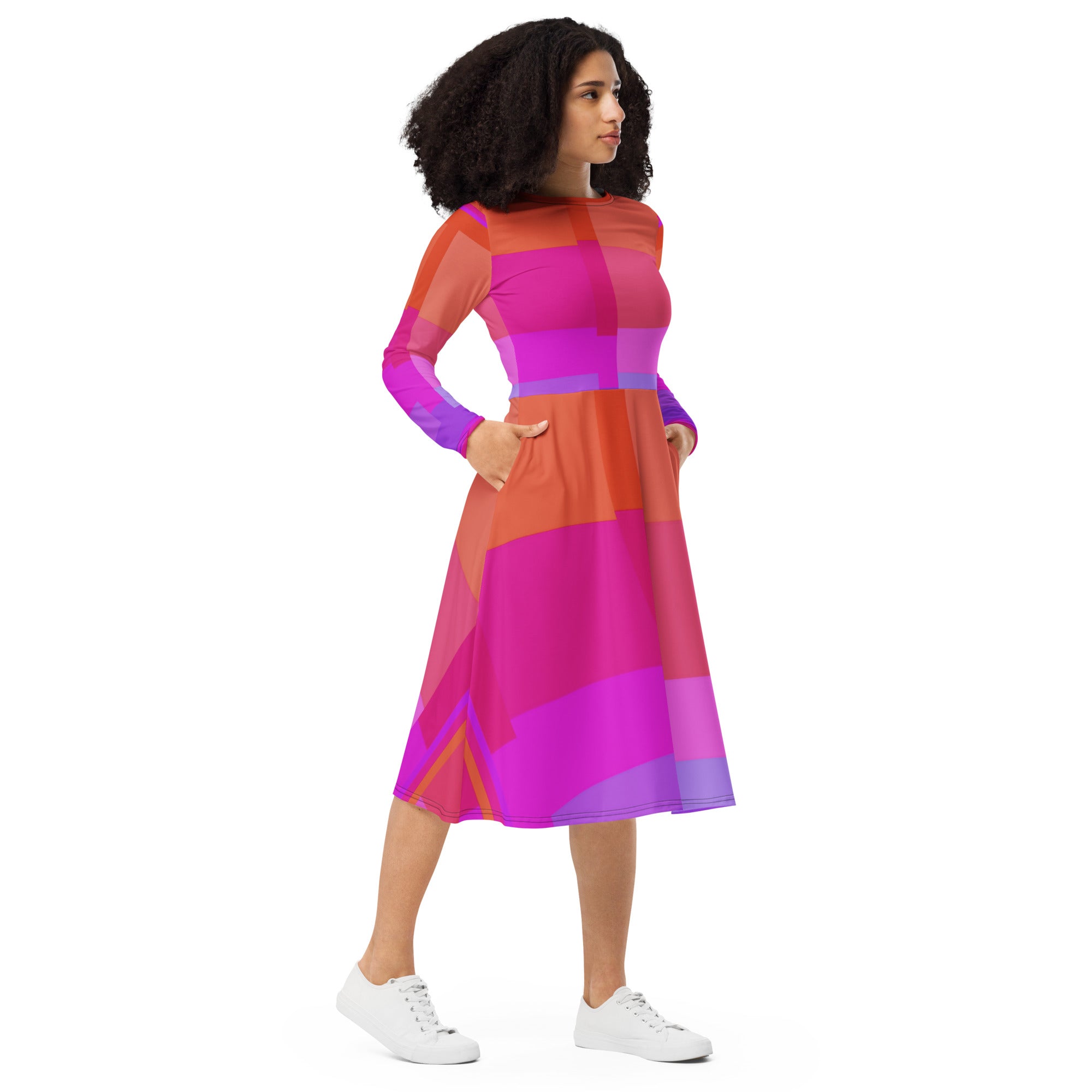 All-over print long sleeve midi dress Laila Lago & C. by I.A.