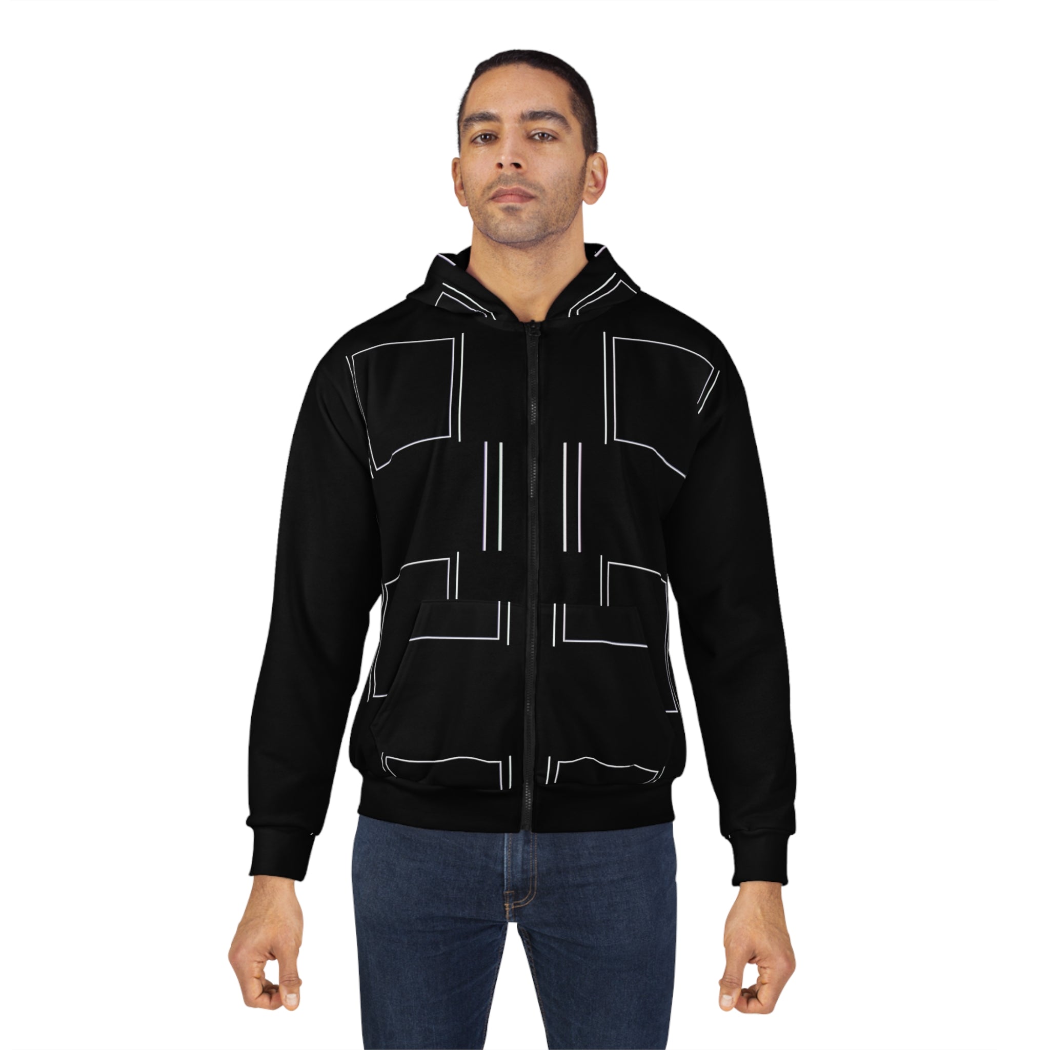 This zipped fleece jacket will keep you nice and toasty through the cold. It’s a great all-over print zip hoodie that is easy to customize without fear of visible white lines at the seams. It has a large front pocket, black zipper, a roomy hood and is custom cut and sewn. It’s your perfect pick this winter.