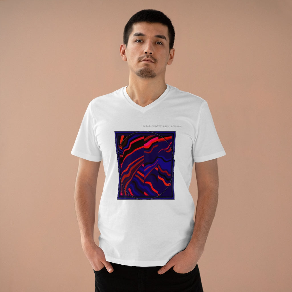 La t-shirt biologica da uomo con scollo a V che stavi aspettando.  Questa comoda t-shirt presenta anche orli delle maniche  e un orlo inferiore con una doppia cucitura stretta. Realizzata per uno stile semplice e resistente, questa è davvero la t-shirt con scollo a V organico di cui hai bisogno. Una stampa grafica moderna realizzata per dare un tocco Arte al capo e renderlo prezioso, abbinabile ai capi della collezione MISTERO 2