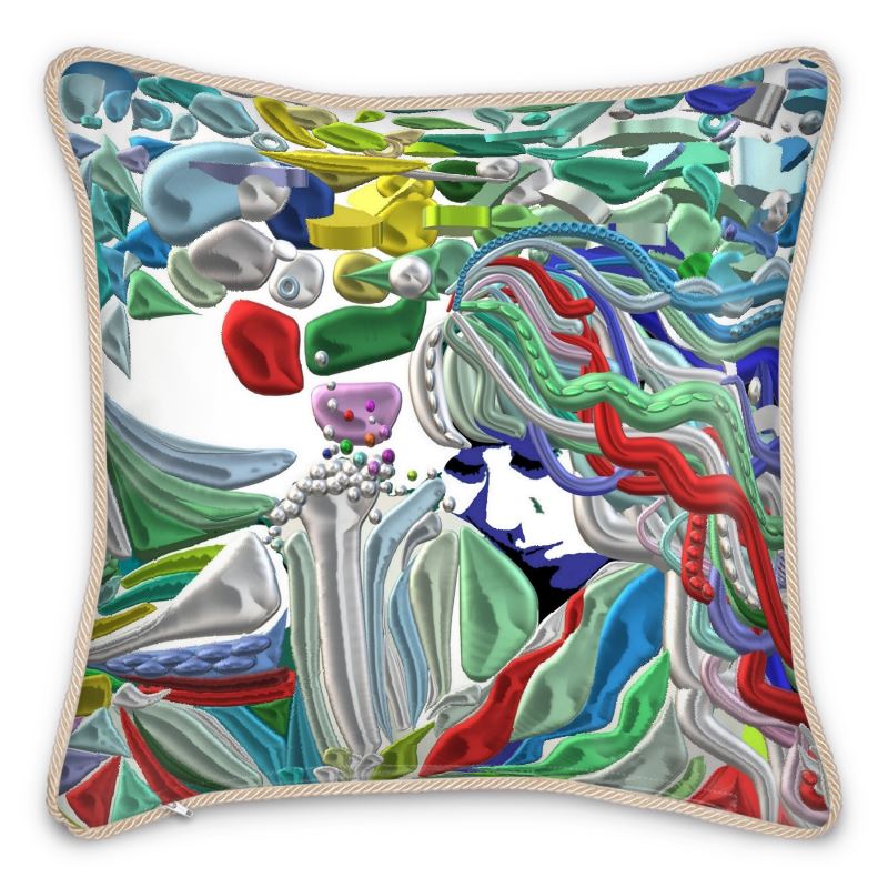 Prezioso cuscino in seta realizzato a mano su ordinazione con materiali pregiati, la stampa preziosa di un lavoro artistico dedicato a questa speciale collezione linea Mistery LailaLago & C. by I.A.
