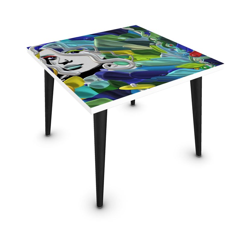 Crafted from sturdy wood with an artistic surface print, it features a smooth satin finish that enhances the artwork's details without compromising practical use. With a 70 cm surface and 47.5 cm height, it fits harmoniously into any setting, from contemporary living rooms to creative studios.
