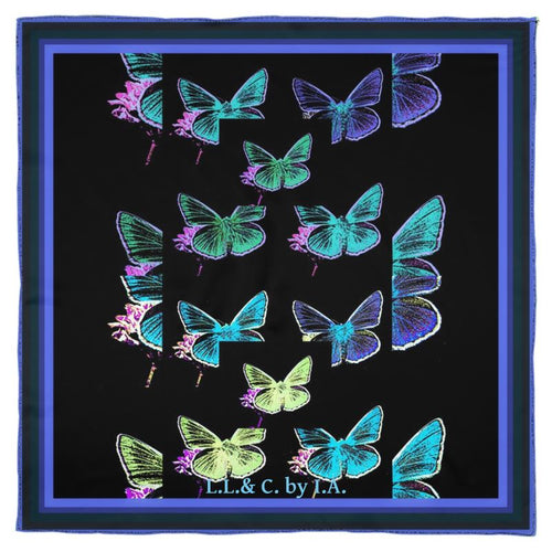 Una collezione dedicata alla natura -FARFALLE- Laila Lago & C. by I.A. Una raccolta carismatica, le farfalle simbolo di libertà e gioia, per uno stile elegante e raffinato. I foulard della collezione hanno disegni diversi con svariati cromatismi, le borse uniche per originalità con geometrie fantastiche e preziose, centrale é il disegno della farfalla che ricorre nei capi e accessori come motivo ripetuto