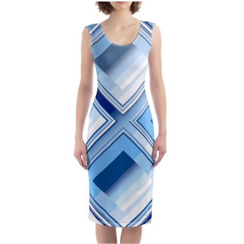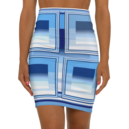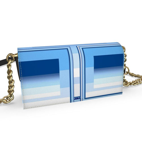 A collection - BLUE GRADATIONS - Laila Lago & C. by I.A. With geometric patterns and countless shades of color from blue to azure to light blue, clothing items and accessories printed with pastel colors, a modern and creative line, handmade bags with artistic printing for a sophisticated and refined effect.