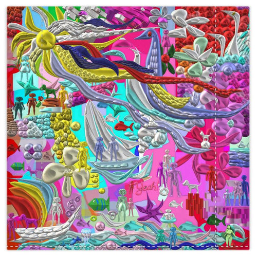 An enchanted journey into the depths where brilliant colors and marine creatures dance in a silent ballet, capturing the mysterious and fascinating essence of the ocean's depths. A work that transforms any wall into a window to the secret world of the sea, offering emotions and serenity through the magic of art.