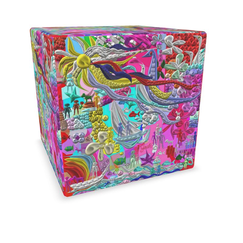 Cubo con stampa artistica linea VITA SOTTOMARINA - Laila Lago & C. by I.A. Un accessorio per lo spazio casa che arricchisce con il design e la stampa la casa, regalando emozioni coloristiche.