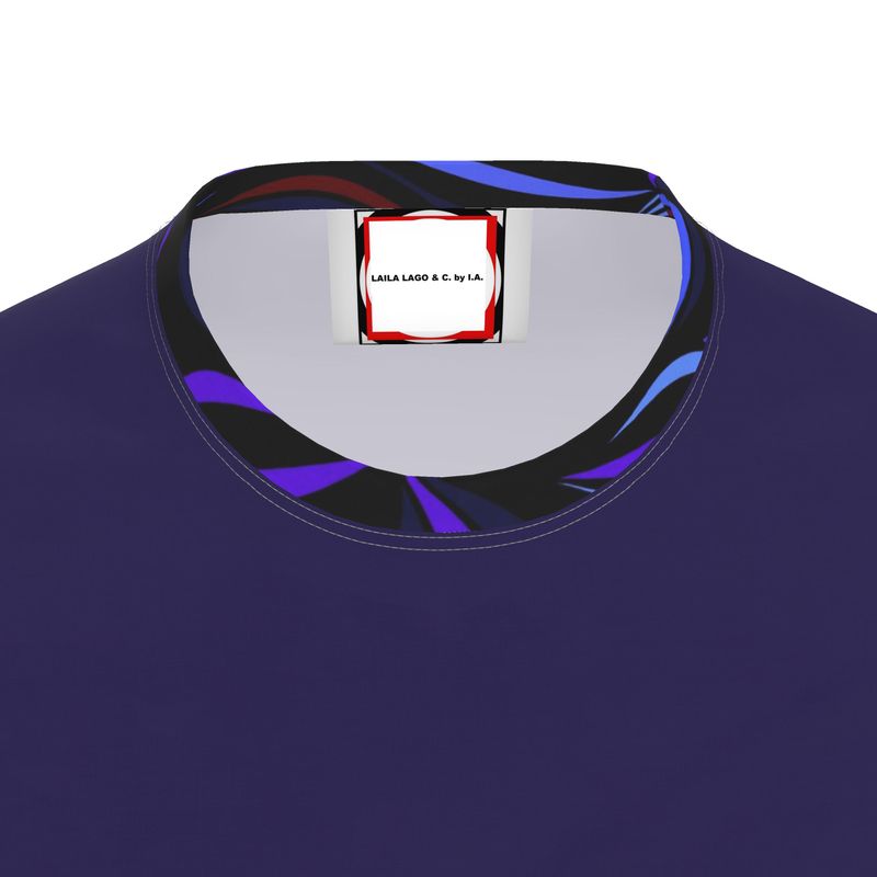 Una bella maglietta elegante e luxury, nelle maniche una decorazione importante, il collo profilato dal disegno della grafica per dare risalto al bianco candido della maglietta.
