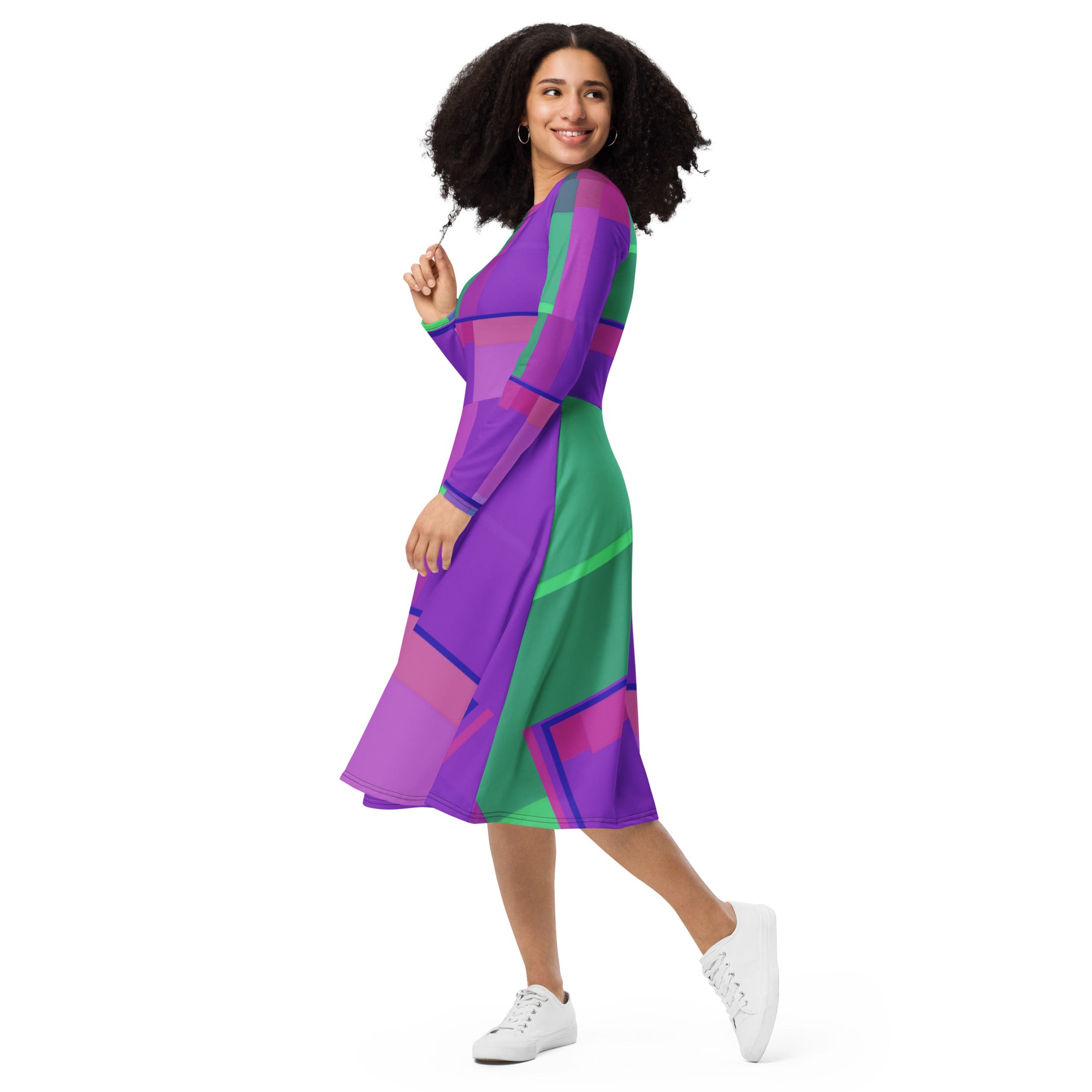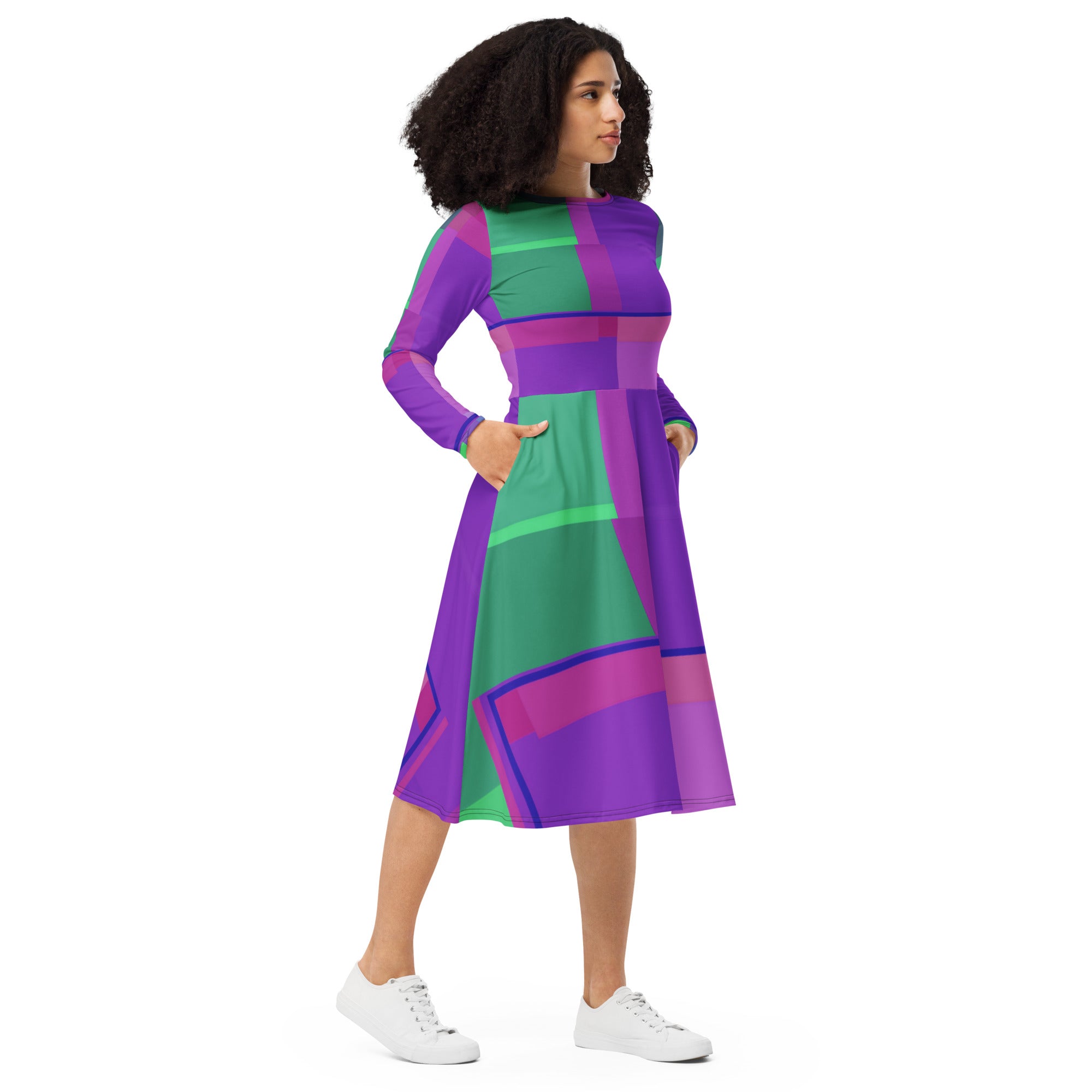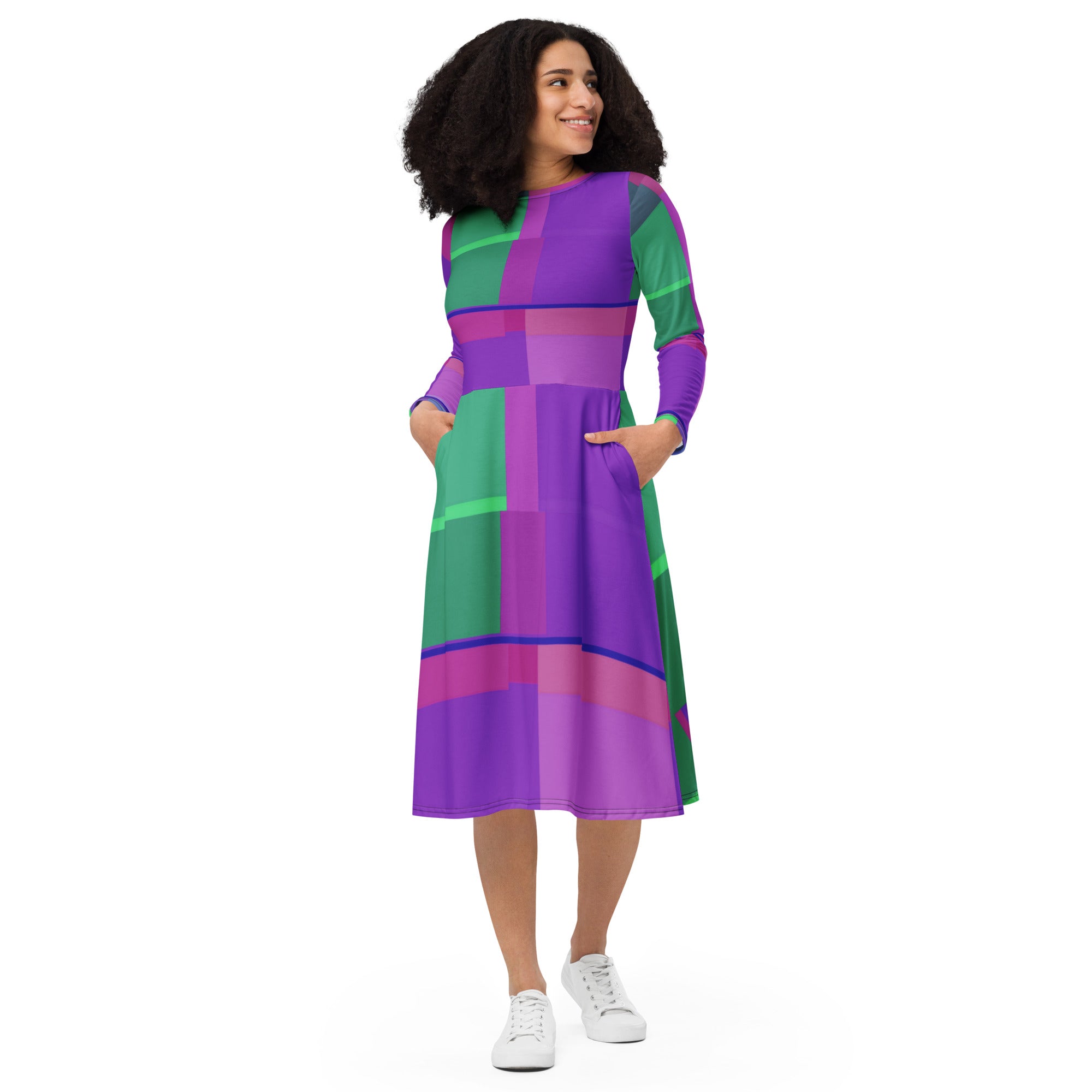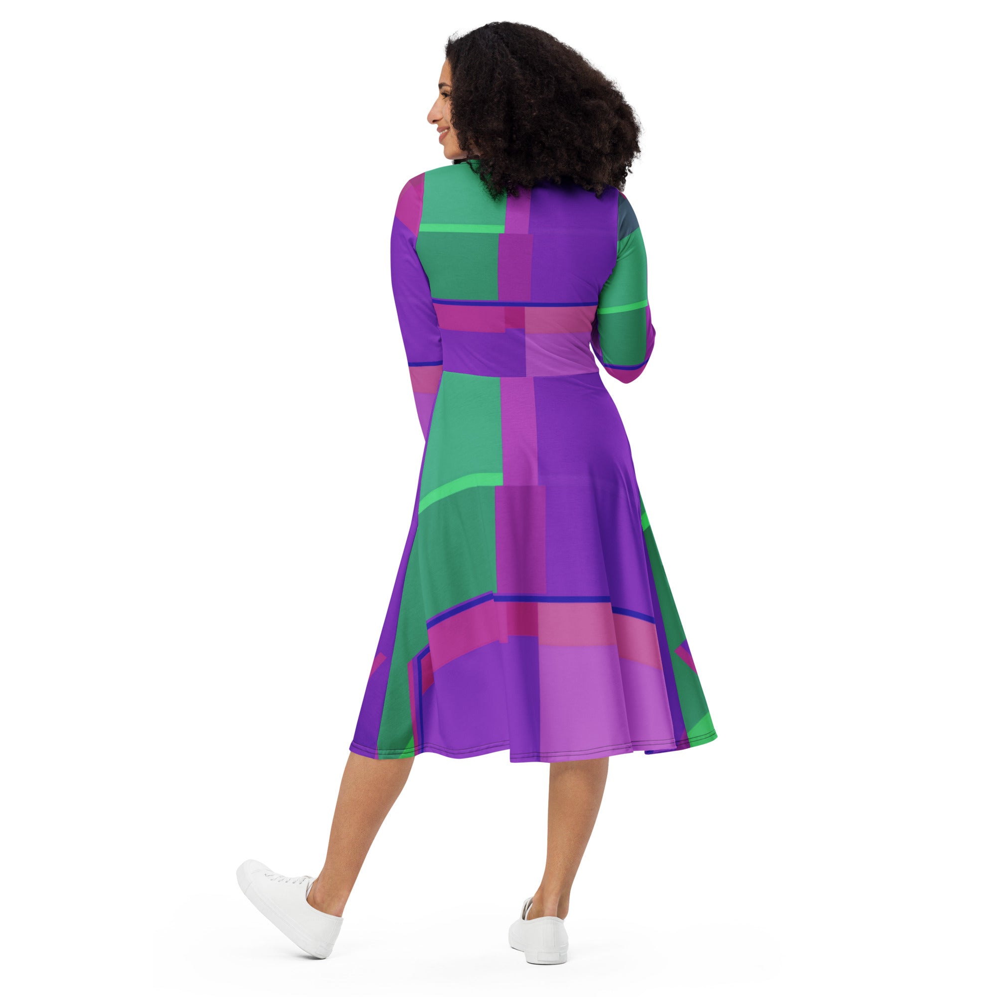 Meet your new favorite dress from the ARCANI MAGGIORI VERDE ROSA-Laila Lago & C. by I.A. line! Its soft fabric and flattering cut will make you feel comfortable and feminine all day long. Additionally, the fitted waist and flared bottom of the dress will accentuate the naturally beautiful silhouette of the wearer. Artistic print from this wonderful collection.This elegant dress represents the essence of modern femininity, where comfort and style meet in perfect harmony. The high-quality fabric gently wraps around the body, ensuring a soft sensation on the skin and freedom of movement that will accompany you throughout the day.The design, studied down to the smallest details, features a fitted waist that enhances the waistline, while the flared skirt creates fluid and graceful movement with every step. This timeless silhouette is perfect for highlighting the natural beauty of every woman, giving elegance and refinement on every occasion.The exclusive print from the Arcani Maggiori Verde Rosa collection transforms this garment into a wearable work of art, where green and pink tones blend in a unique pattern that captures the eye and tells a story of creativity and artistic passion.Perfect for an aperitif with friends, a romantic dinner, or a special event, this dress is the ideal companion for every woman who wants to feel special and irresistible, expressing her personality with class and originality.