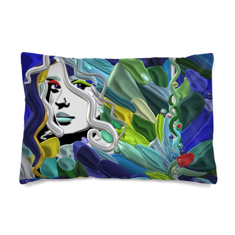 Copripiumino "Il fiume di Galatea" realizzato artigianalmente a mano con la stampa della collezione "IL FIUME DI GALATEA" - Laila Lago & C. by I.A. Due federe con stampa artistica in coordinato con il copripiumino regalano un tocco artistico alla tua casa.