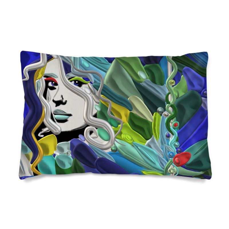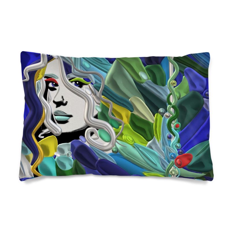 Silk pillowcase with artistic print from the "Galatea's River" line - Laila Lago & C. by I.A., handcrafted.Transform your rest into an experience of luxury and beauty with this designer silk pillowcase, where art meets the most refined comfort. The exclusive artistic print captures the fluid and poetic essence of Galatea's river, with vibrant colors dancing across the precious silk, creating a touch of artistic elegance in your most intimate space.