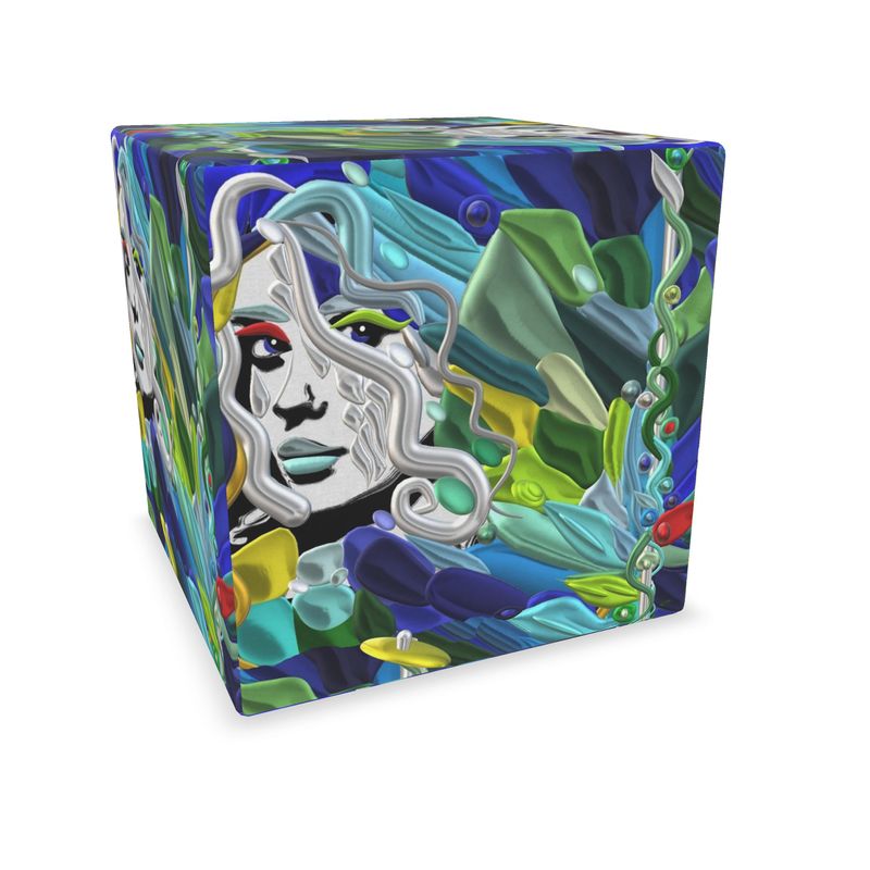 A cube pouf that combines comfort and art in a single design gesture. From the "Il Fiume di Galatea" collection, this furnishing element brings into your home the softness of velvet and the fluidity of artistic prints, transforming every space into an environment of contemporary beauty.