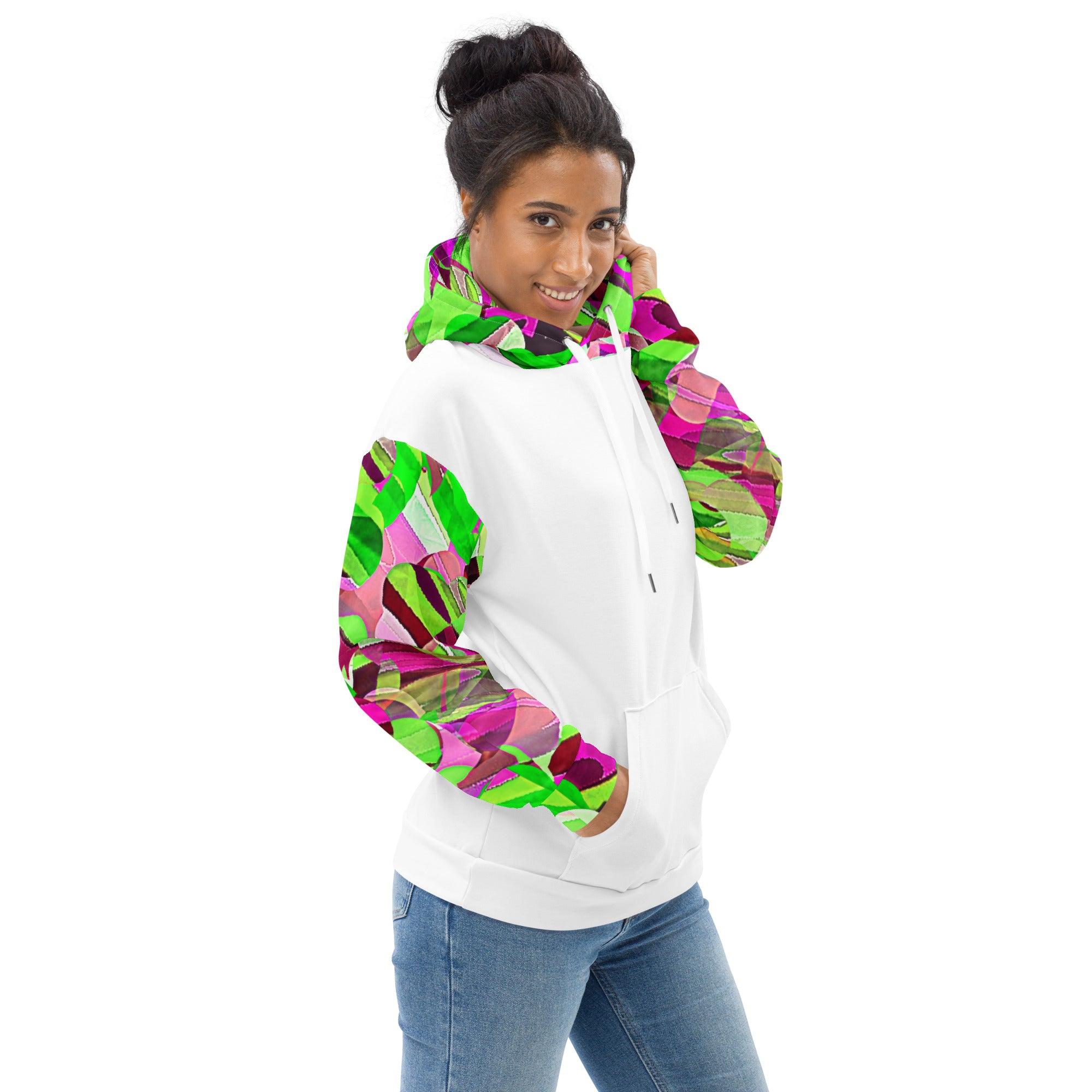 Discover the perfect balance between comfort and style with this extraordinary unisex hoodie that transforms every moment into an experience of pure well-being. The artistic prints that dance on the sleeves and hood tell a story of creativity and passion, while the ultra-soft exterior pairs with a brushed fleece interior that feels like a gentle caress on your skin.With its relaxed and enveloping fit, this hoodie becomes your perfect refuge on cool evenings, a warm embrace that accompanies you with elegance and originality. It's not just a piece of clothing, it's an emotion to wear.