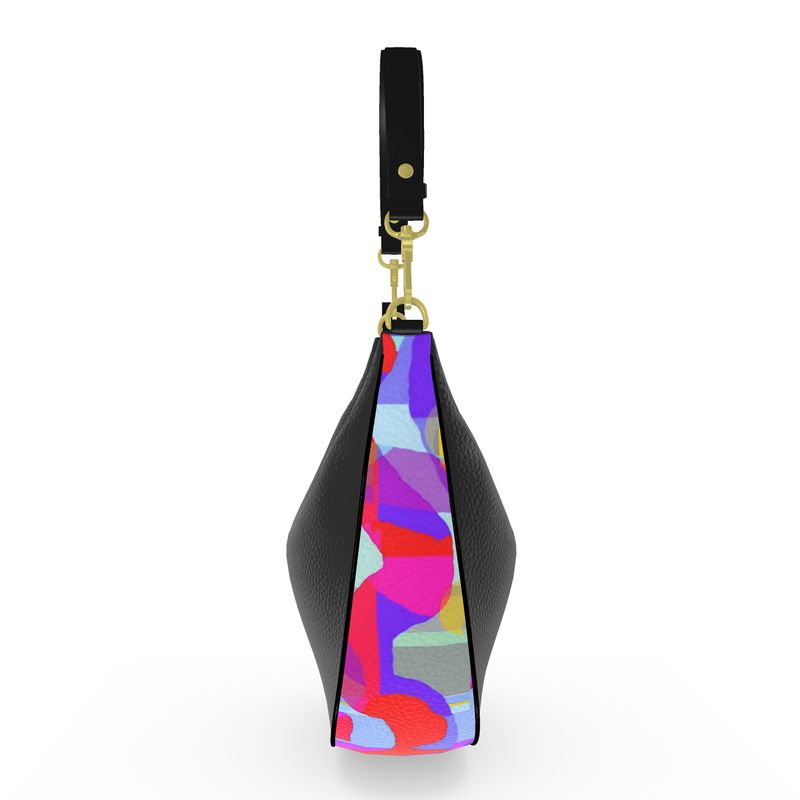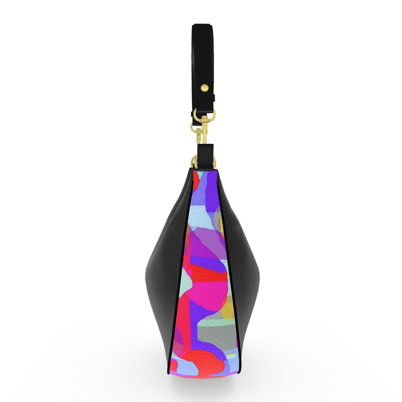Elegante borsa artigianale realizzata in pregiata pelle di nappa, caratterizzata da una raffinata stampa artistica laterale che rende ogni pezzo unico e distintivo.